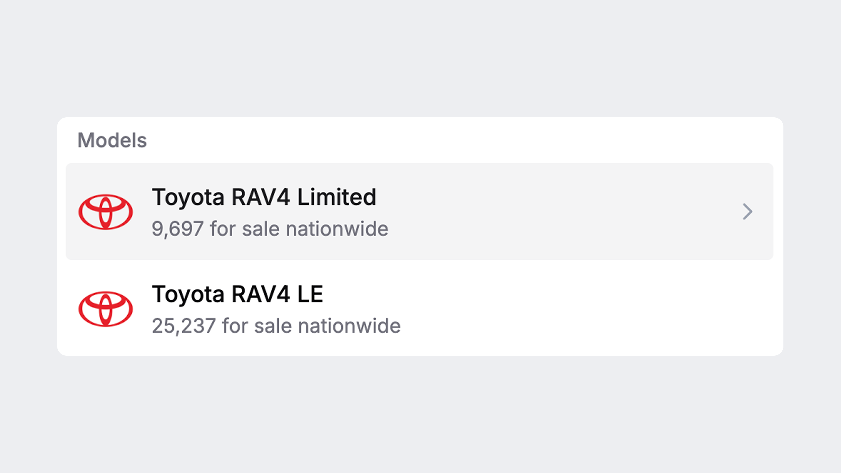 • We’re looking to even further simplify the filtering experience by combining make/model-specific searches and “see everything at once.”