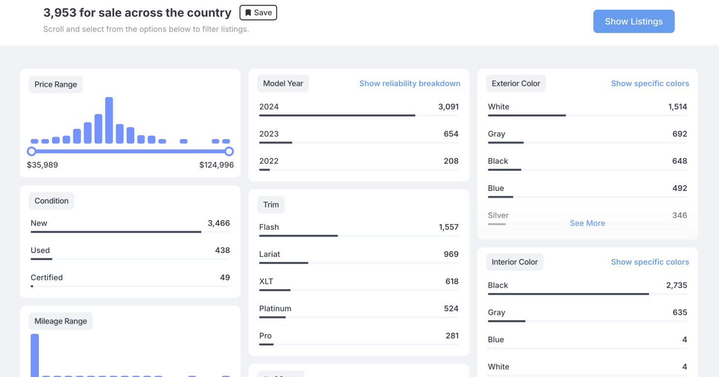 Resolved discrepancies between dealer listing counts seen on the map and inside the popup after clicking on a dealer map marker.