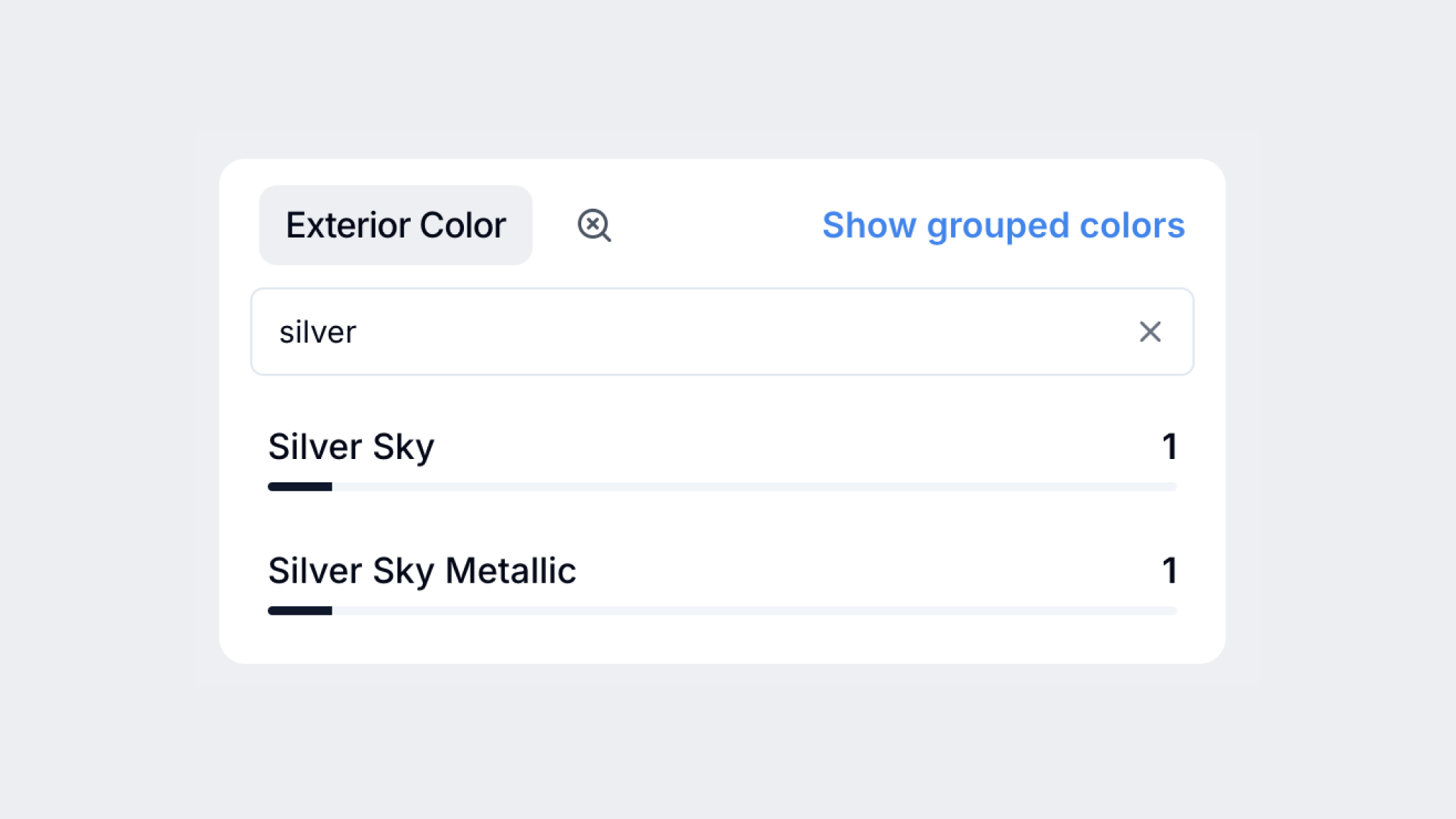 Now, instead of hunting for “Silver Sky Metallic” in the list of colors on the filter page, you can simply click the 🔍 icon next to the header, and start typing. We hope this starts to save you a lot of time in searching for your dream ride.